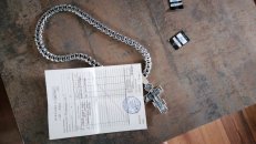 Цепь заказывала шириной 8 мм, длина 60 см. И крестик.
