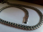 Полновесная цепочка.Очень популярное среди мужчин плетение «Рамзес», также на просторах интернета данное плетение можно увидеть под названием «Двойной обратный бисмарк». В особенности мужское внимание привлекают толстые серебряные цепочки из «Двойного обратного бисмарка» с размерами близкими к размерам на фото. И тем не менее, если такая цепочка лично для Вас смотрится на шее весьма громоздкой или наоборот маловатой, то Вы без особого труда можете откорректировать практически любой её параметр под свои вкусы, в том числе есть возможность выбрать как с чернением, так и нечернёную или же с родированием.